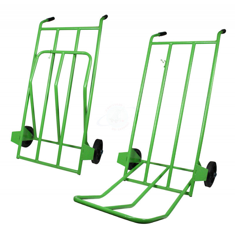 2 ruote gommate Ø 200 Dimensioni mm 660x1250 Pedana mm 600x500 Portata Kg. 200 Peso Kg. 15 Alette per protezione ruoteImpugnatura ergonomicaManopole in gomma atossicaPedana riuchiudibile, facile da trasportareVERNICIATURA A POLVERI ACRILICHECONFORME NORME CE