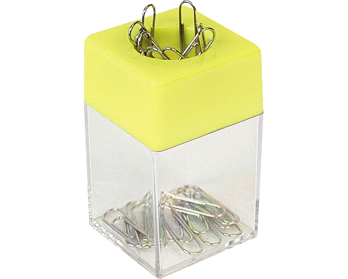 Portafermagli calamitato in plastica trasparente. Oltre che i fermagli e adatto per contenere spilli, clip e qualsiasi minuteria metallica.